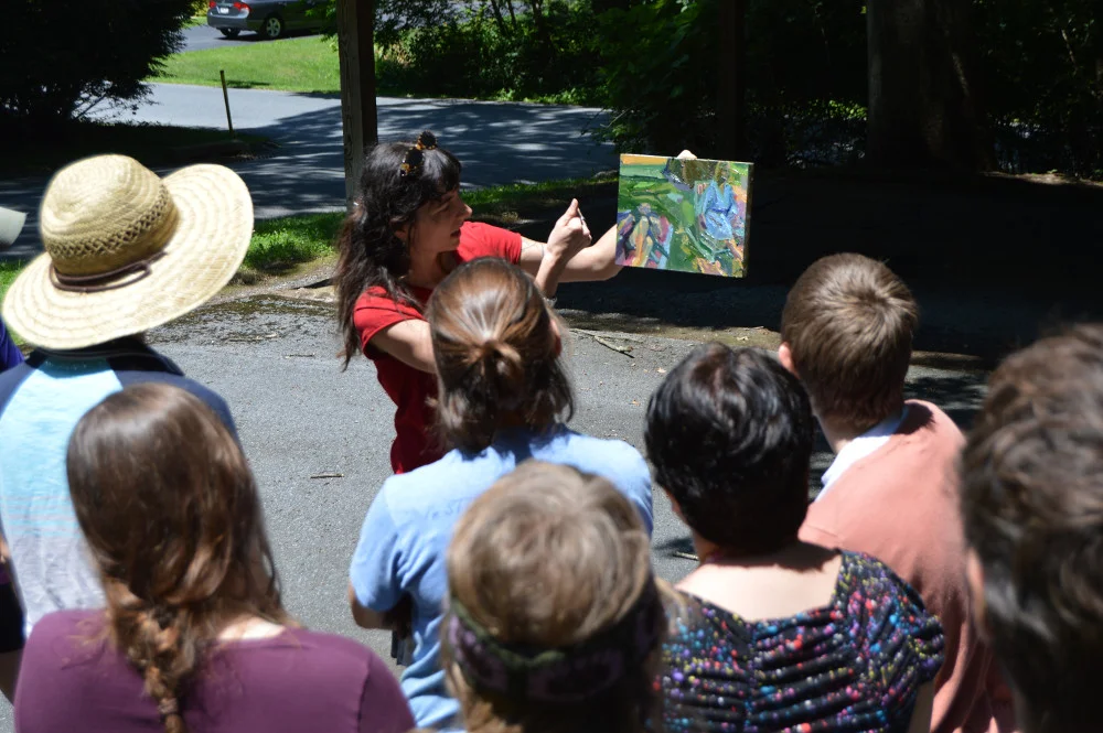 Lastly, Stephanie Pierce gave a powerful artist talk during our Wednesday morning lecture series at the Hall of Philosophy in the Pennsylvania Chautauqua. She talked about her fight between representing the image of what she sees verses the experience of seeing. Her work is about movement and transience. Nature and light reveal itself to us in a "now-you-see-it, now-you-don’t" manner. This is also something the writer Annie Dillard heightened in awareness to this summer (we read her thoughts on “seeing” before starting our last three weeks of the summer with Stephanie). Stephanie’s paintings deeply connect with light’s movement across space and time. She spoke of seeing the rectangle of her paintings as a container of space holding restlessness. She confronts the fear of not knowing where the painting is going, an ideal that many painters, including myself, often hold on to tightly. Elements and moment in her paintings compete for importance and existence in the painting. She searches to find what matters to make it into the painting. Wisdom that has resonated in my head from Stephanie’s talk is her belief that painting can point to something outside of itself. Her paintings undeniably point to an experience of looking and the impossibility of capturing reality.