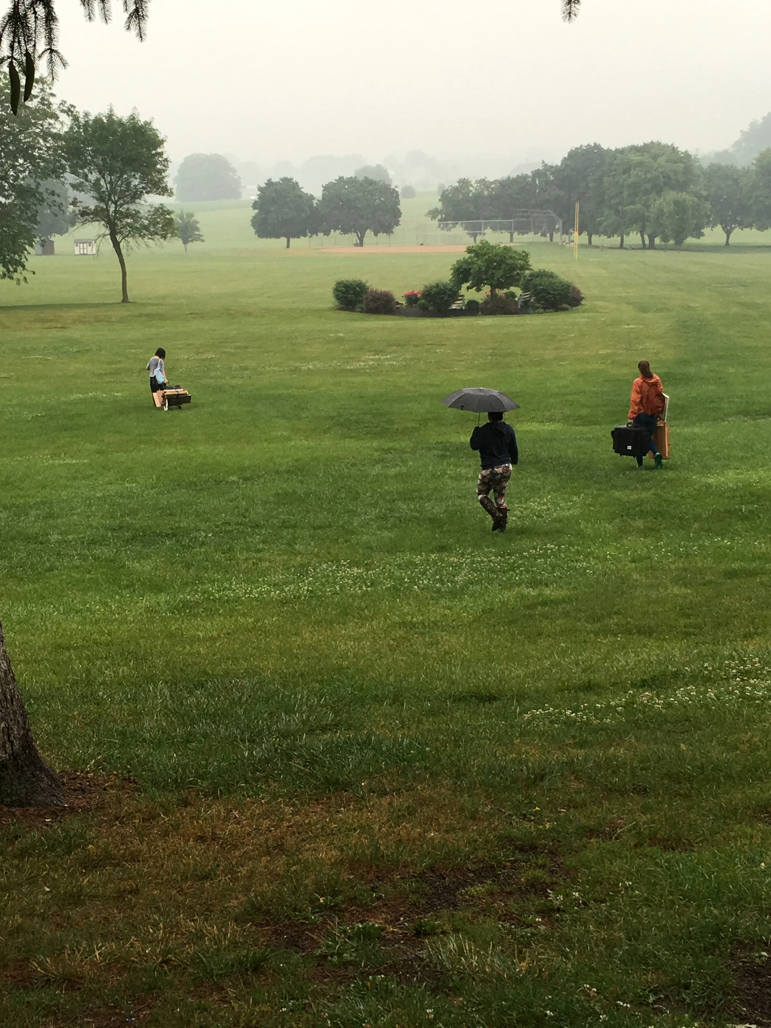 We had a big dinner at Boehm cottage tonight. There were sparks and smoke as we watched some neighbors light fireworks. Though I felt that we were all in some degree exhausted by the culmination of the momentum that we had been building since we arrived at Mount Gretna, there was also a pervasive energy and excitement for the incoming teachers and work in store. Tomorrow marks the half way point of the program, a day to take stock of supplies, prime canvasses, and make studies to hit the ground running on Monday with the start of a new momentum aimed always towards higher states of observation, of further growth, and of sustained reflection.